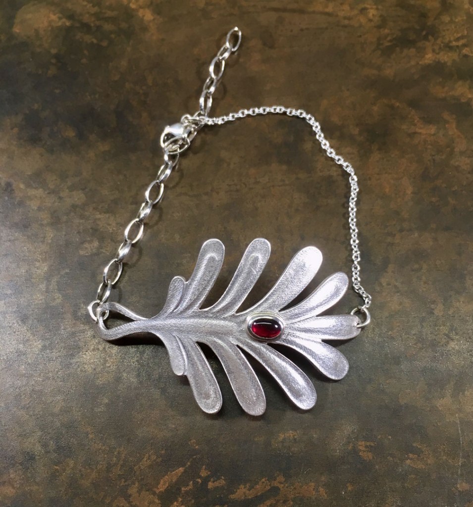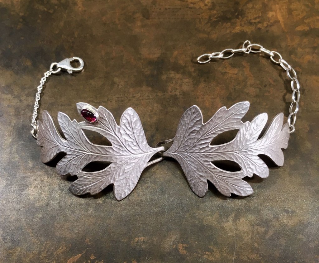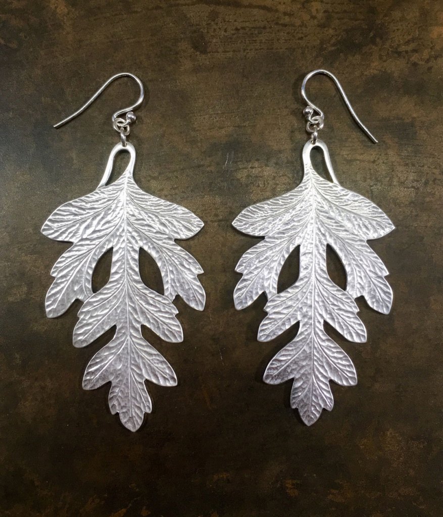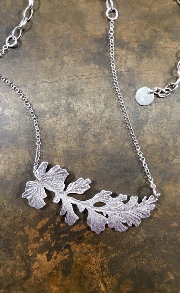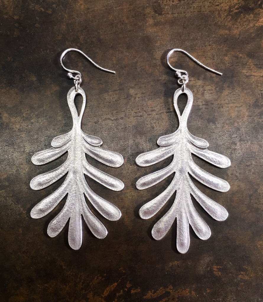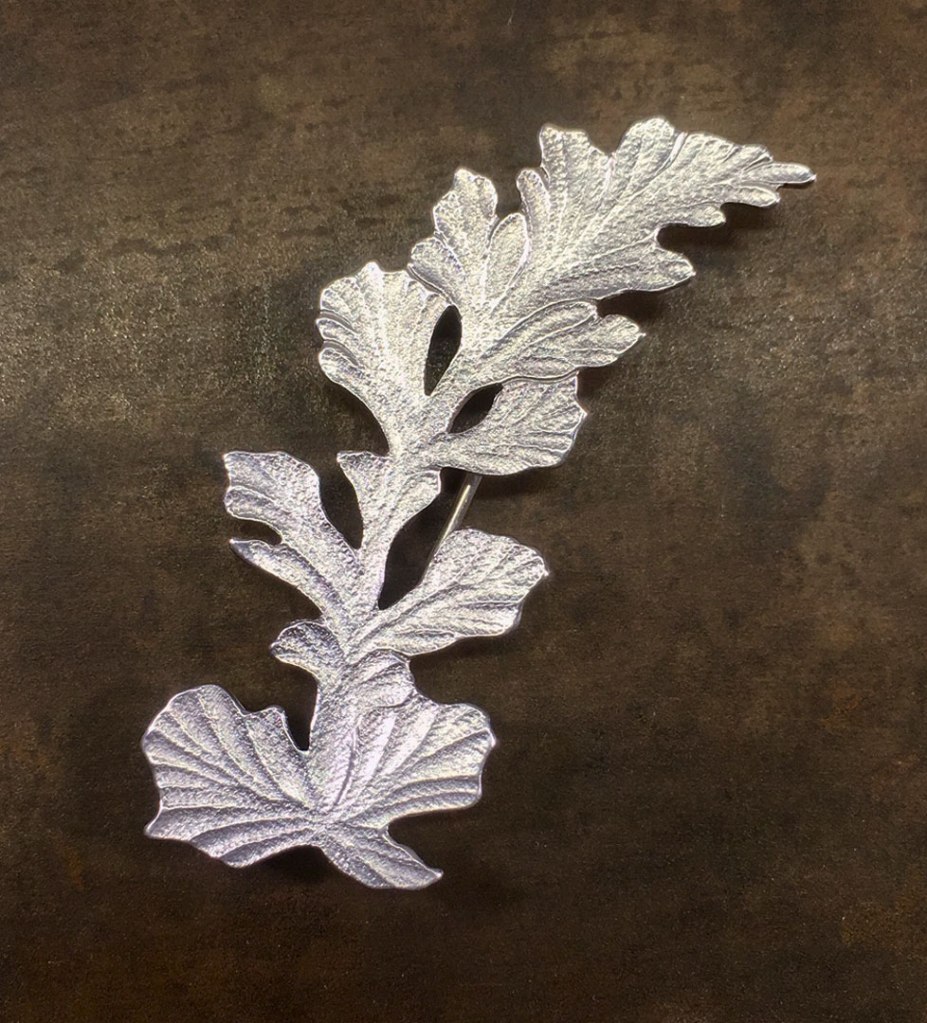 La collection de boucles d’oreilles, pendentifs et broches, inspirée du catalogue de formes végétales du photographe Karl Blossfeldt.